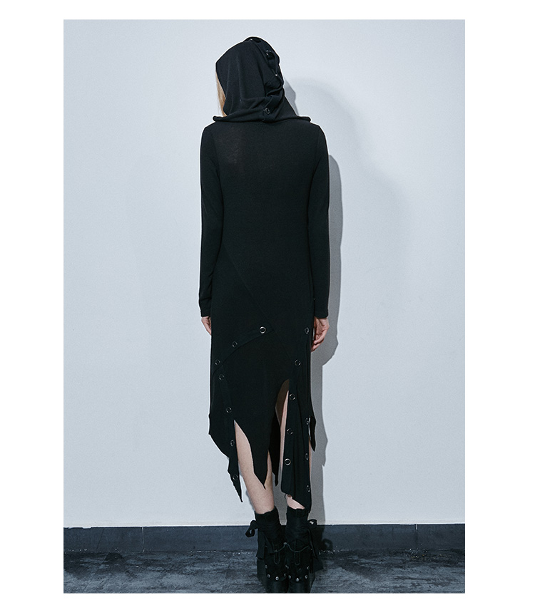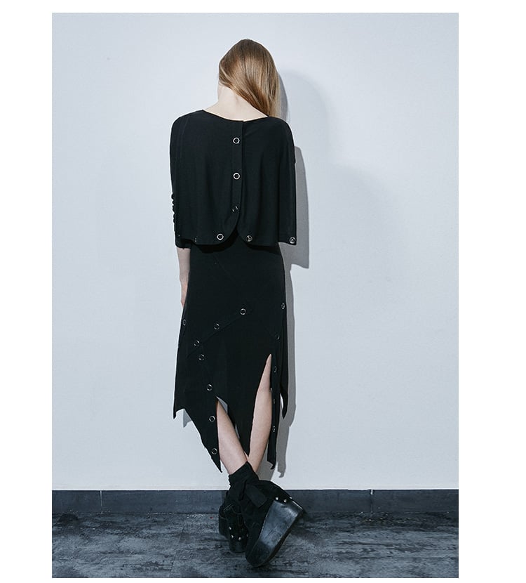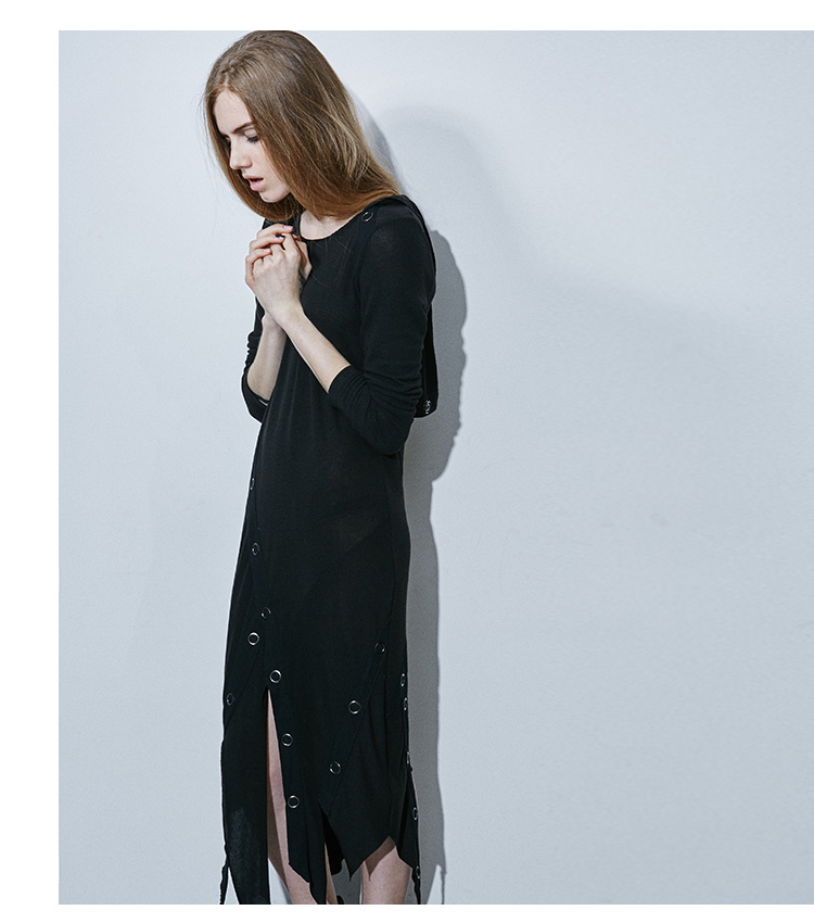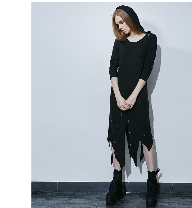 PUNK RAVE IRREGULAR KNITTED BLACK AUTUMN DRESS PM-024