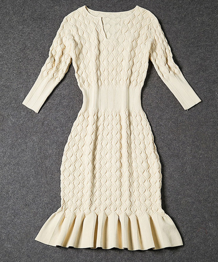 V NECK FISHTAIL AUTUMN SLIM STRETCH WOMEN DRESS