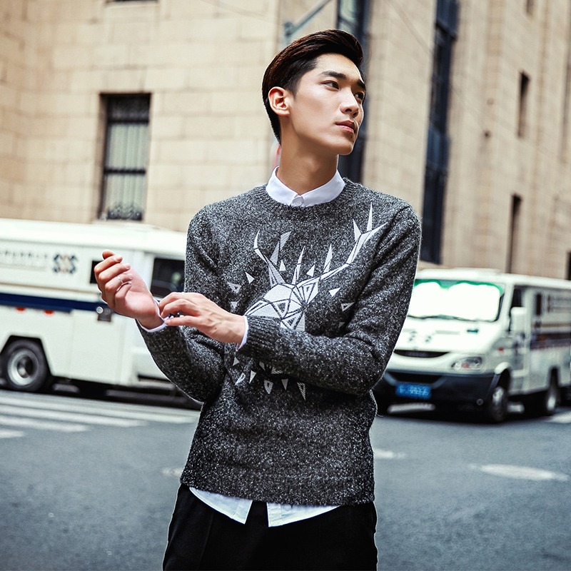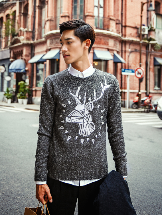 DEER EMBROIDERED GRAY JAPANESE STREET STYLE CASUAL SWEATER
