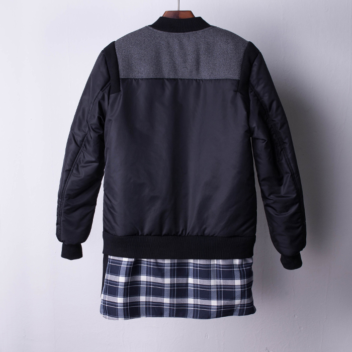 BRITISH FASHION STYLE QUILTED PLAID THICK BLACK JACKET
