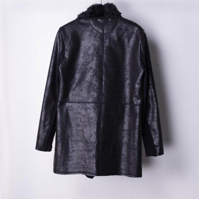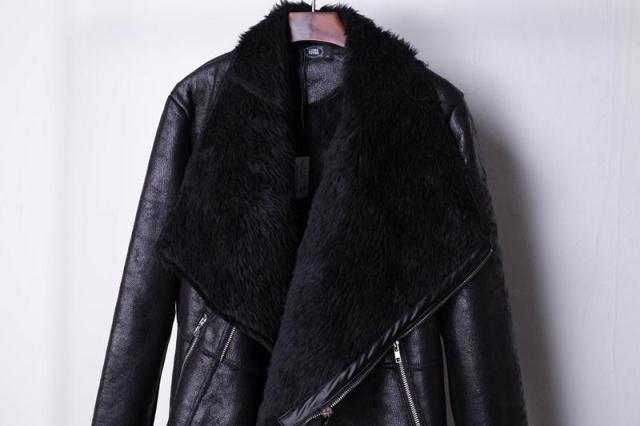 BRITISH FASHION FUR SYNTHETIC LEATHER CARDIGAN BLACK JACKET