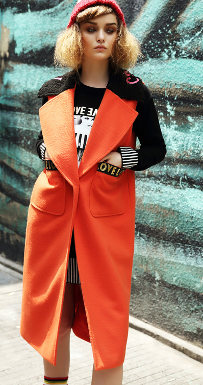 CarROUsel ORANGE WOOLEN LONG VEST WITH GREEN BUCKLE