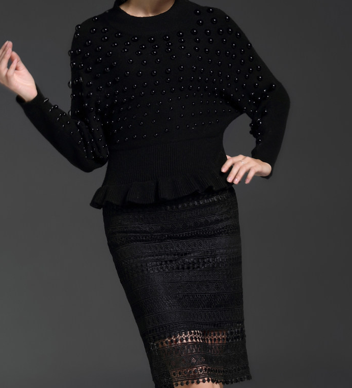 VITI BAT SLEEVES ELEGANT GRAY BLACK DRESS 1223