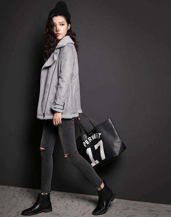 GRAY SUEDE MOTORCYCLE STYLE WOOLEN LEATHER JACKET OTHERMIX 5MG4010X