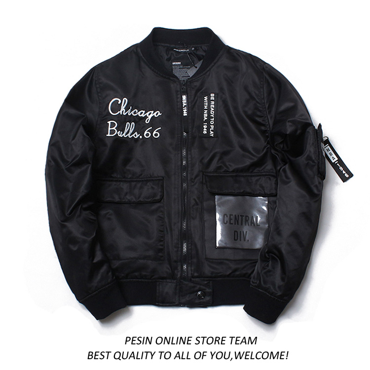 NBA 1946 CHICAGO BULLS CENTRAL DIV THICK PADDED BASEBALL BLACK JACKET