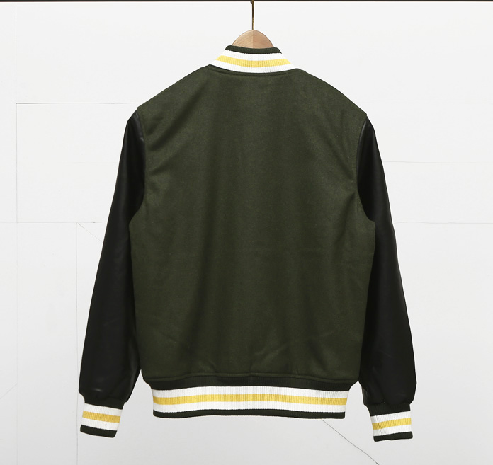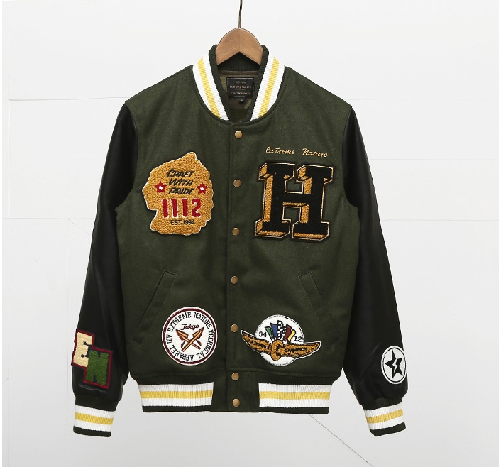 H EXTREME NATURE WOOLEN CAMO GREEN SYNTHETIC LEATHER SLEEVE JACKET