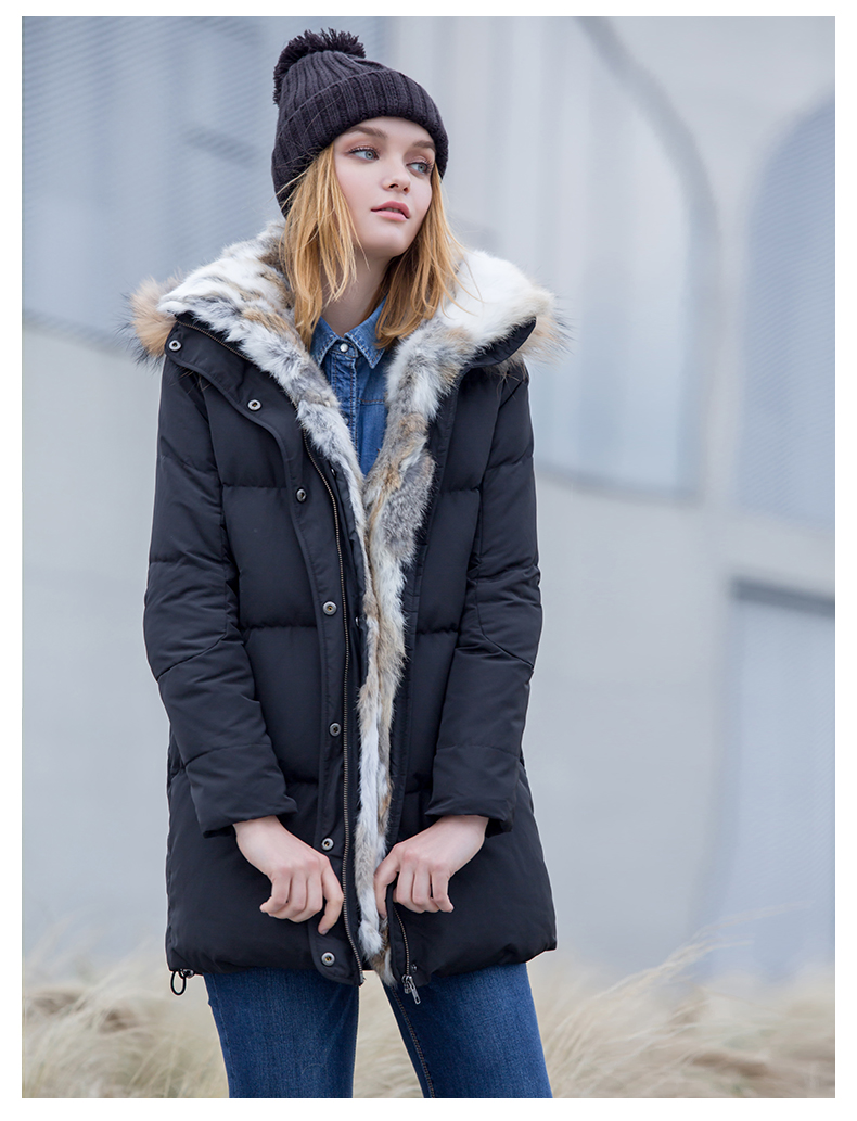 EUROPEAN STYLE FAUX WHITE BLACK HOODED WINTER COAT 14DC019