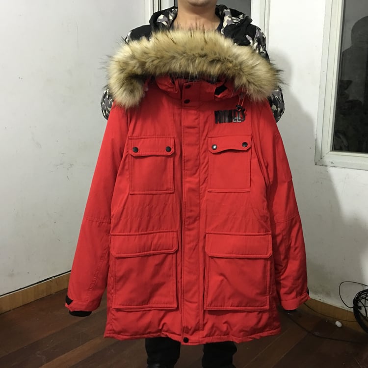 MLB BASEBALL THICK HOODED BLUE RED BLACK FUR JACKET