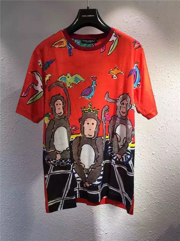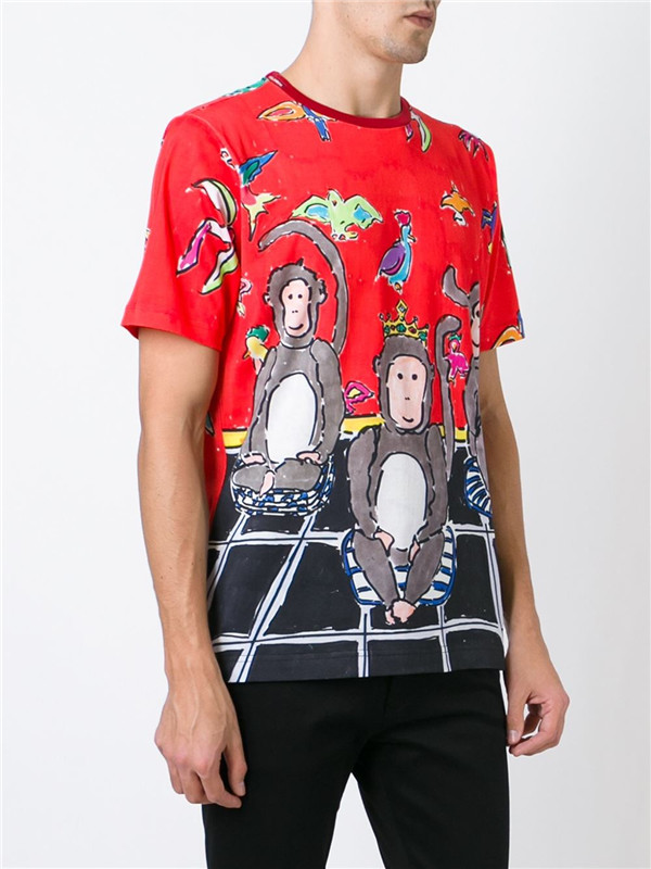 DG CARTOON PRINTED SHORT SLEEVED MONKEY MONEY RED BLACK T SHIRT