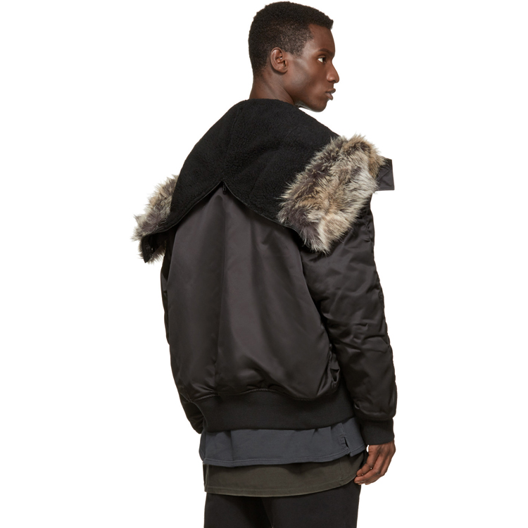 ZY SEASON 1 BLACK FAUX FUR BOMBER CAP ZIPPER PARKA JACKET