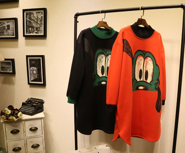 KOREAN STYLE ORANGE BLACK GOOFY PRINTED LOOSE DRESS