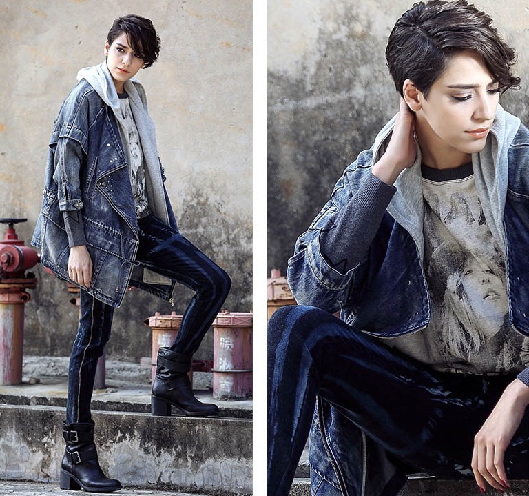 JAPANESE FASHION CASUAL LOOSE DENIM RIVET HOODED JACKET