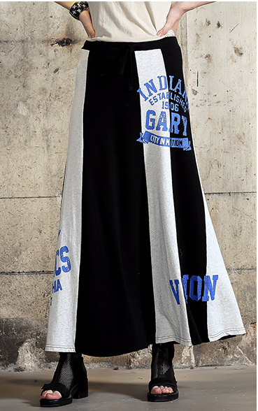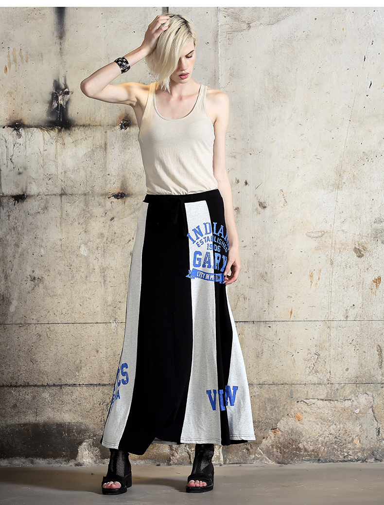 EUROPEAN FASHION LETTERS PRINTED A LINE LONG CASUAL SKIRT