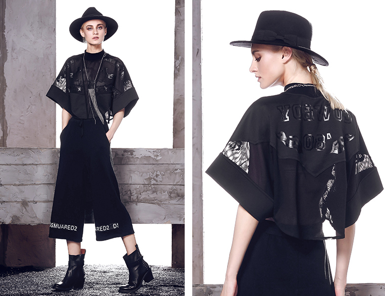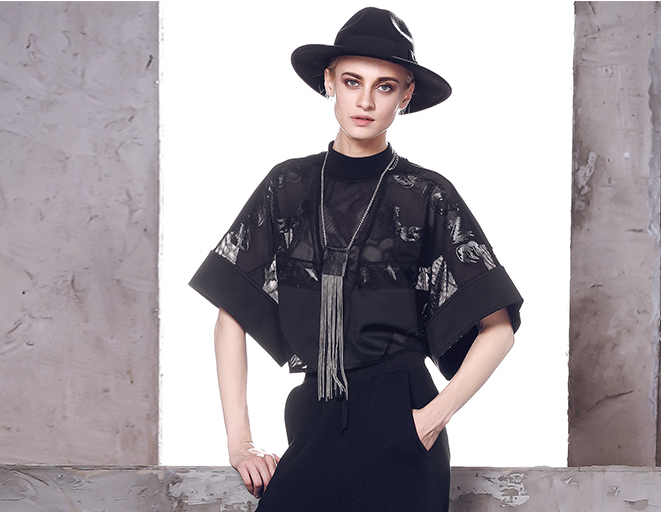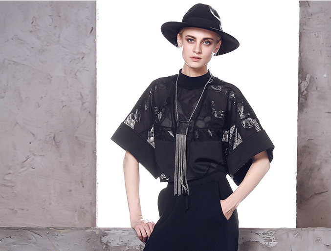 SPECIAL DESIGN PIERCED EMBOSSED BAT SLEEVES SHIRT 235355007