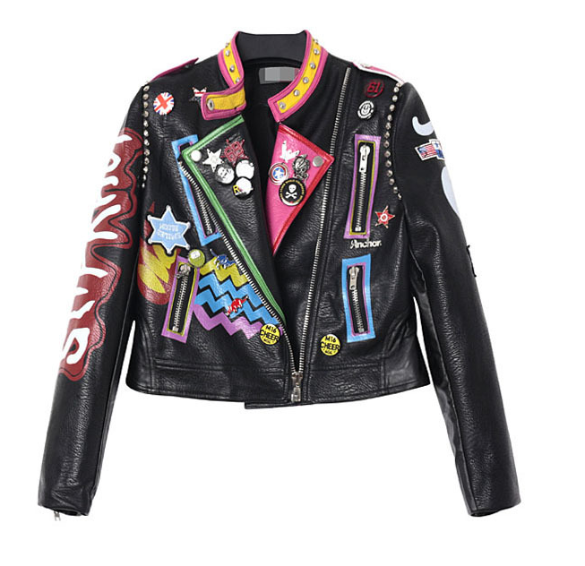 ROCK AND ROLL STREET FASHION METAL DECORATIVE MOTORCYCLE LEATHER JACKET