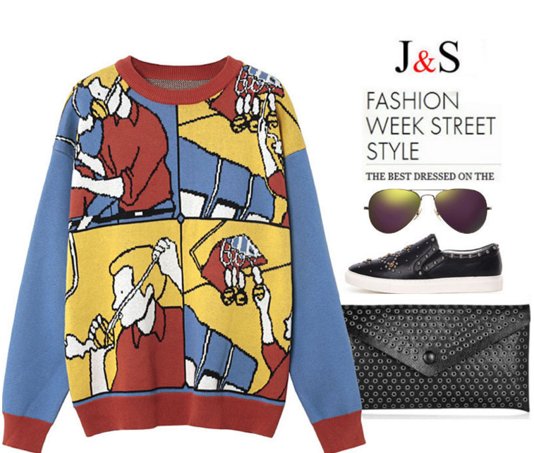 STREET FASHION CARTOON FIGURED MULTI COLOR SWEATER