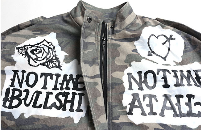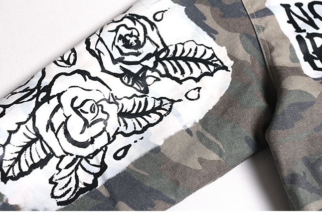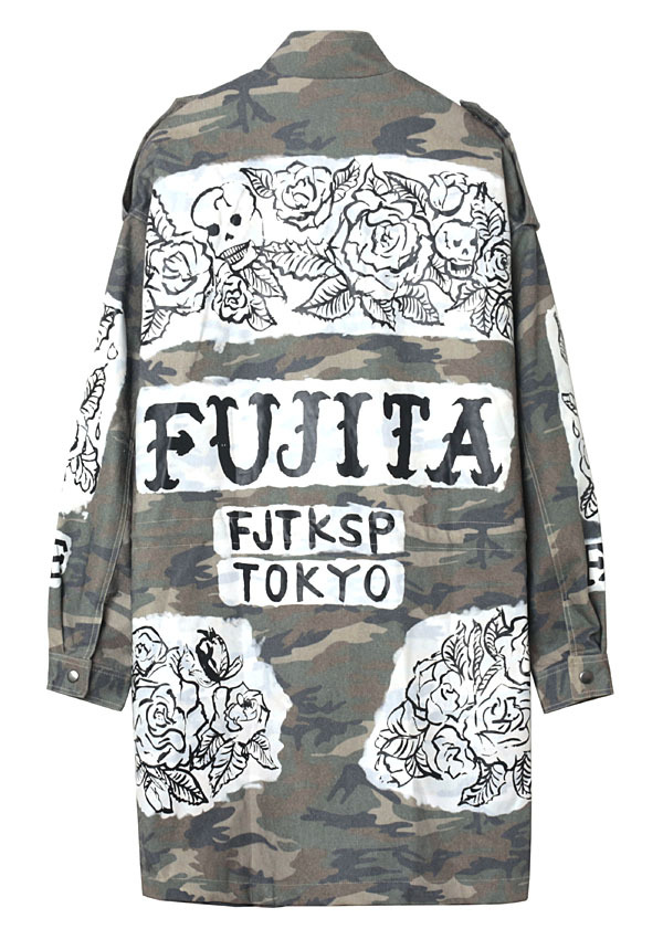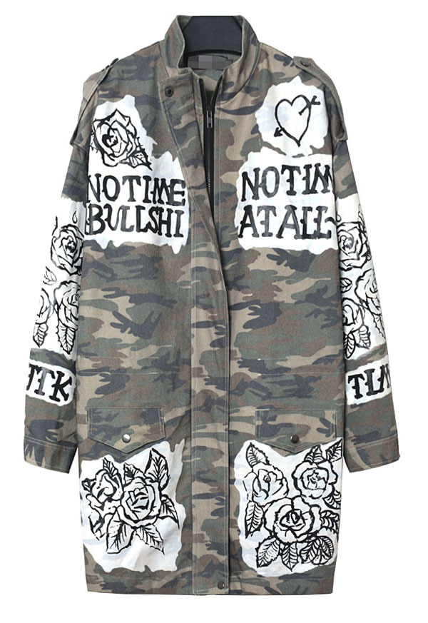 HARAJUKU STYLE CAMOUFLAGE ROSES LETTERS ROSES DYEING COLLAR LONG COAT