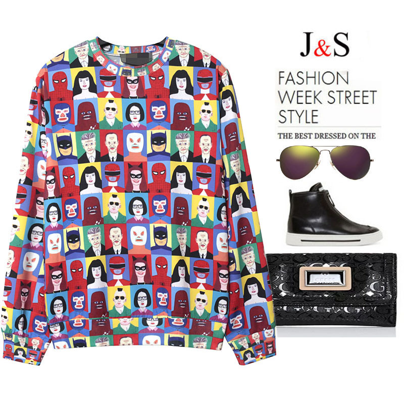POP ART CARTOON FIGURED DYEING LOOSE SWEATSHIRT Q92816