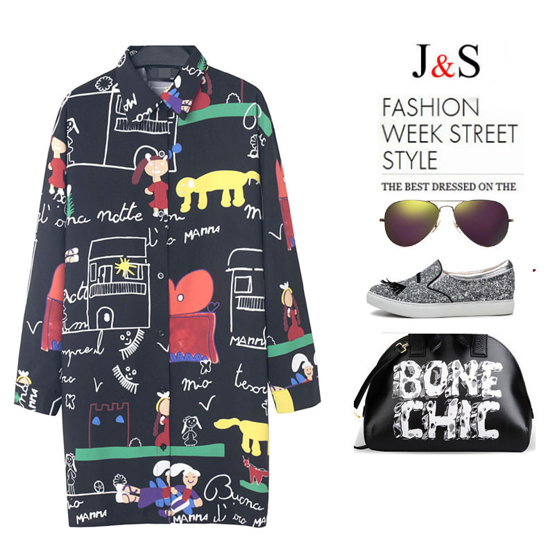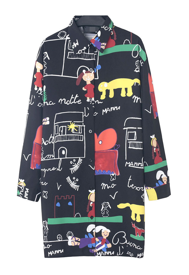 CARTOON SKETCHES PRINTED LONG SHIRT DRESS Q5698 4