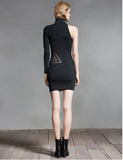AMERICAN HIGH FASHION HIGH NECKED BLACK SLIM FIT COCKTAIL DRESS