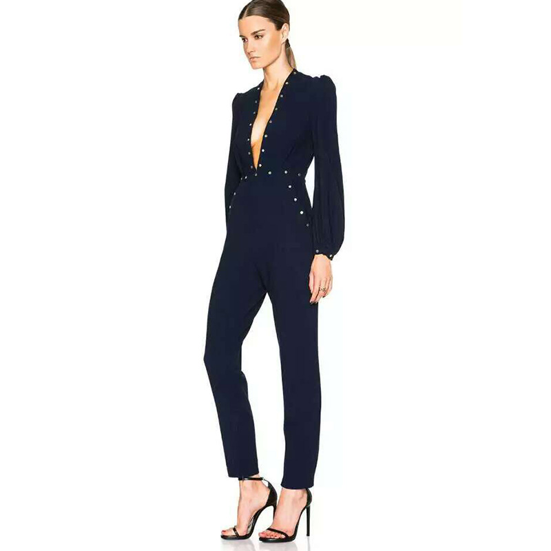 2016 FASHION DEEP V LANTERN SLEEVE JUMPSUIT MM794