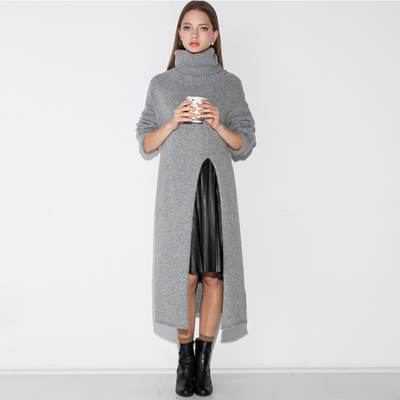 MILANO FASHION GREY HIGH NECKED SLIT SWEATER DRESS MM874