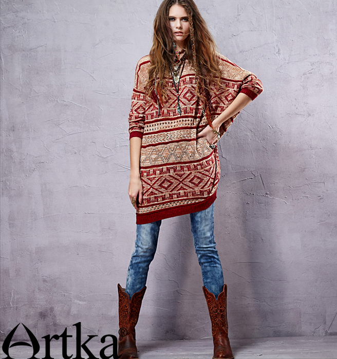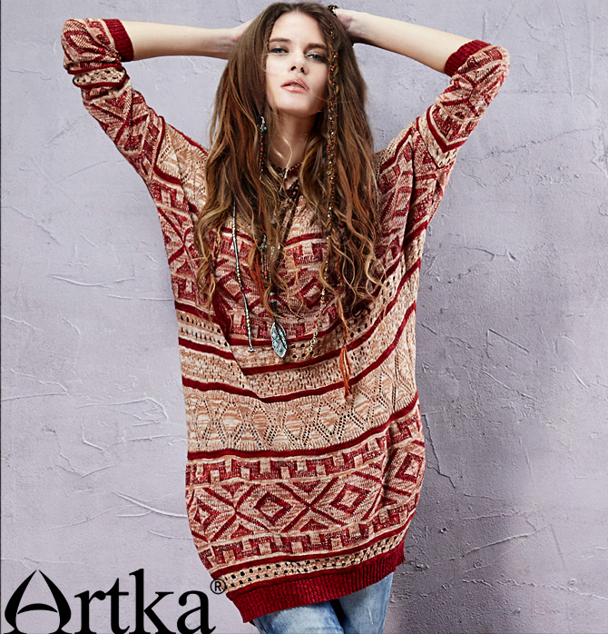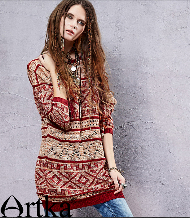 ARTKA ETHNIC PATTERN BOHEMIAN STYLE DRESS SWEATER YB14255C