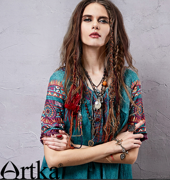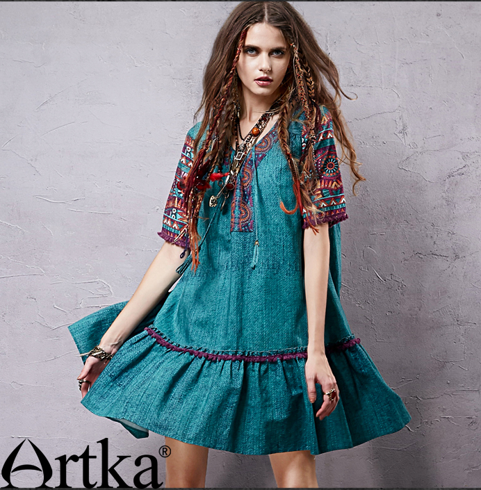 ARTKA MEXICO STYLE FLORAL PRINTED COTTON LOOSE DRESS LA15057X