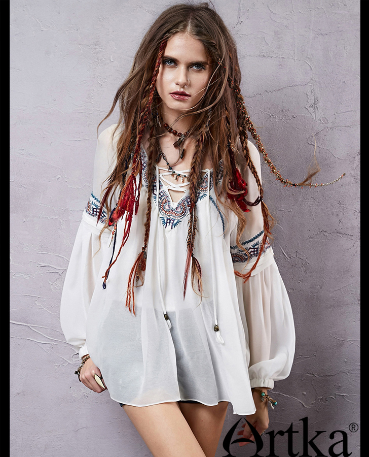 ARTKA HANDMADE EMBROIDERED LANTERN SLEEVES BLOUSE SA14358C