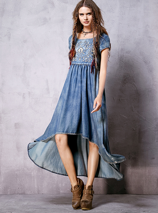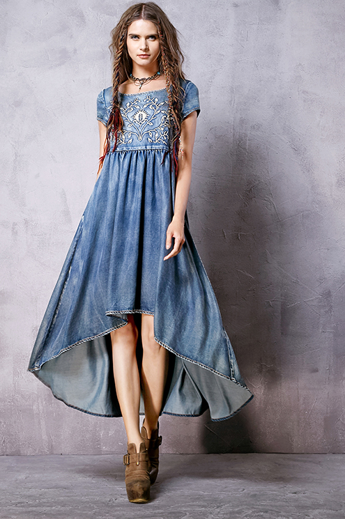 ARTKA EMBROIDERED ASYMMETRIC DENIM DRESS LN10261C