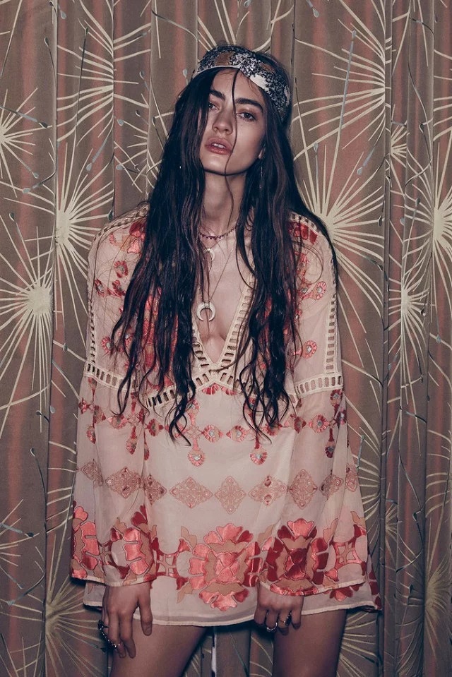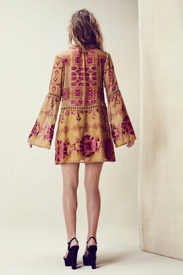 BOHEMIAN STYLE DEEP V NECK CHIFFON DRESS