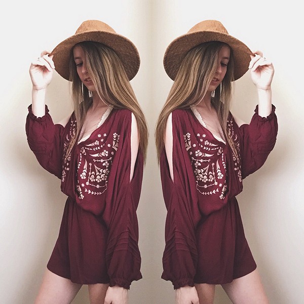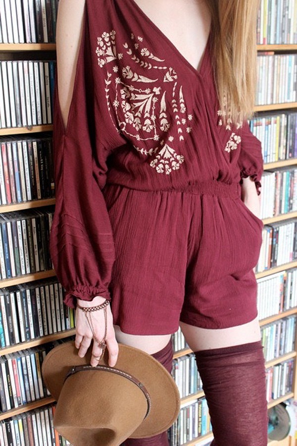 FP WINE RED FLORAL EMBROIDERED STRAPLESS JUMPSUIT