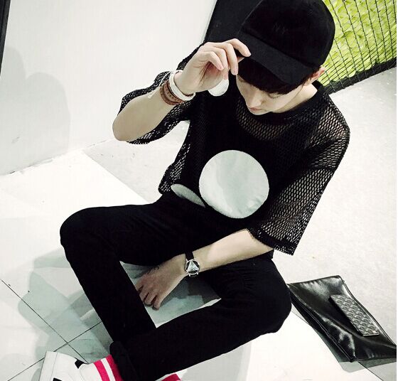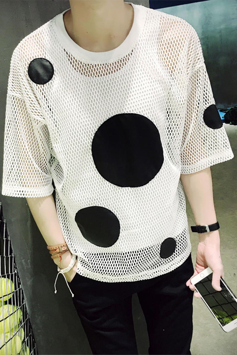 HOLLOW DESIGN SHORT SLEEVE WHITE BLACK POLKA DOTS T SHIRTS