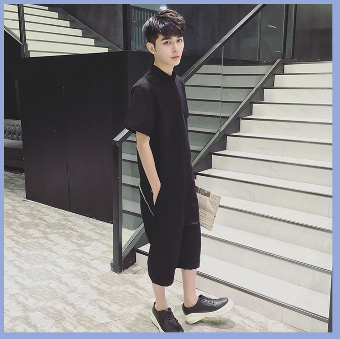 BLACK BACK ZIPPER DECORATED SHORT SLEEVED JUMPSUIT PANTS