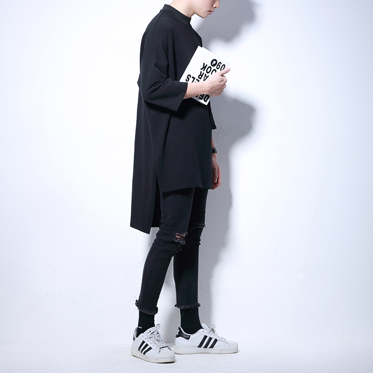 CONNIVE SPRING BLACK BLUE WIND LONG SLIT POCKET T SHIRT