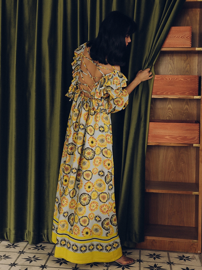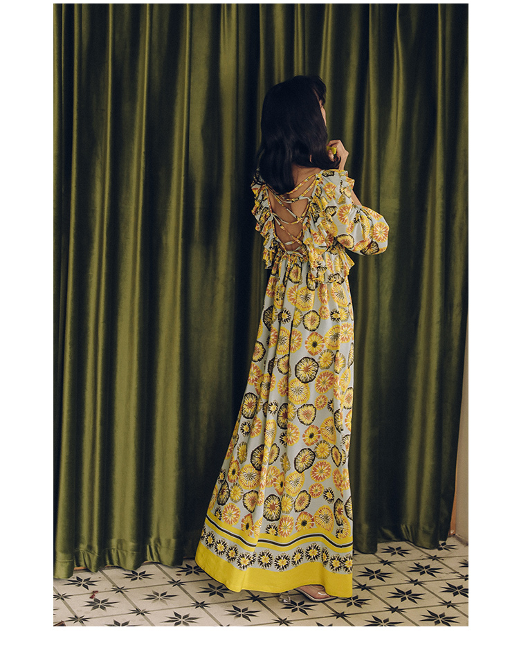 SINCE THEN FRILL DETAIL TIE BACK MAXI DRESS IN MULTI FLORAL PRINT