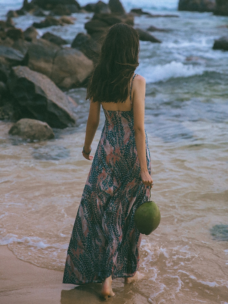 Tropical print Low V-neck 100% cotton Adjustable straps
