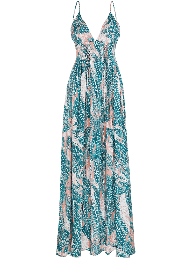 SINCE THEN PLUNGE FRONT MAXI DRESS IN TROPICAL PRINT