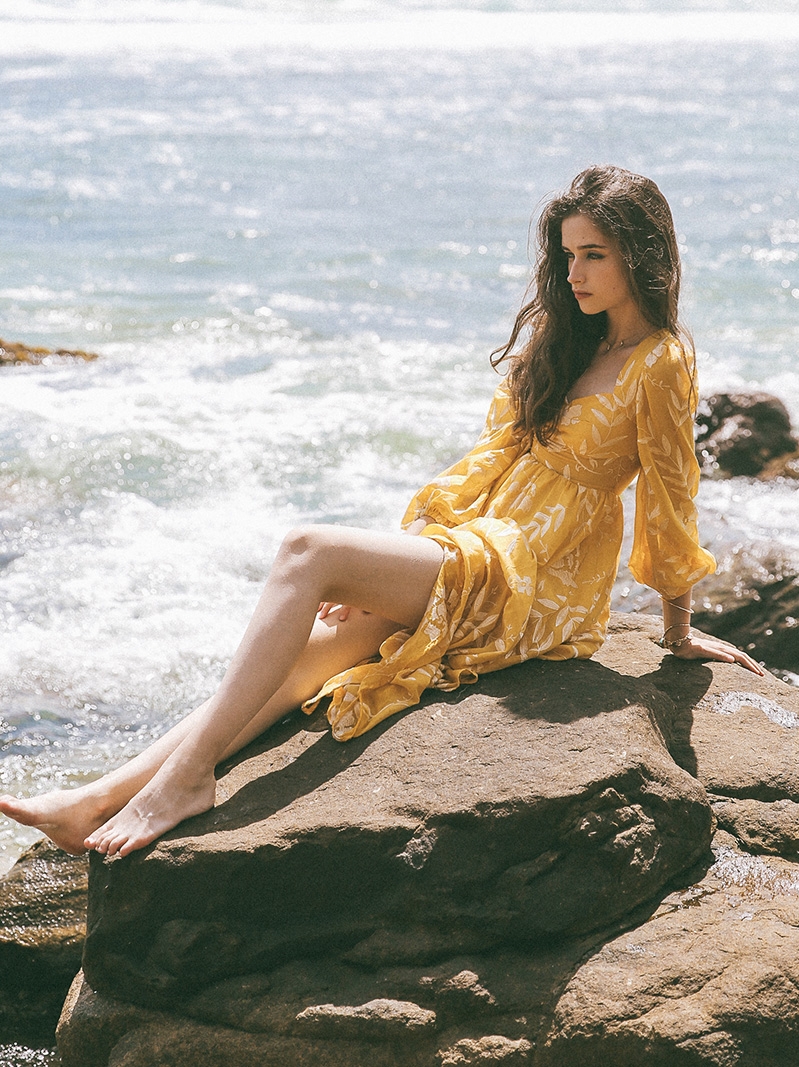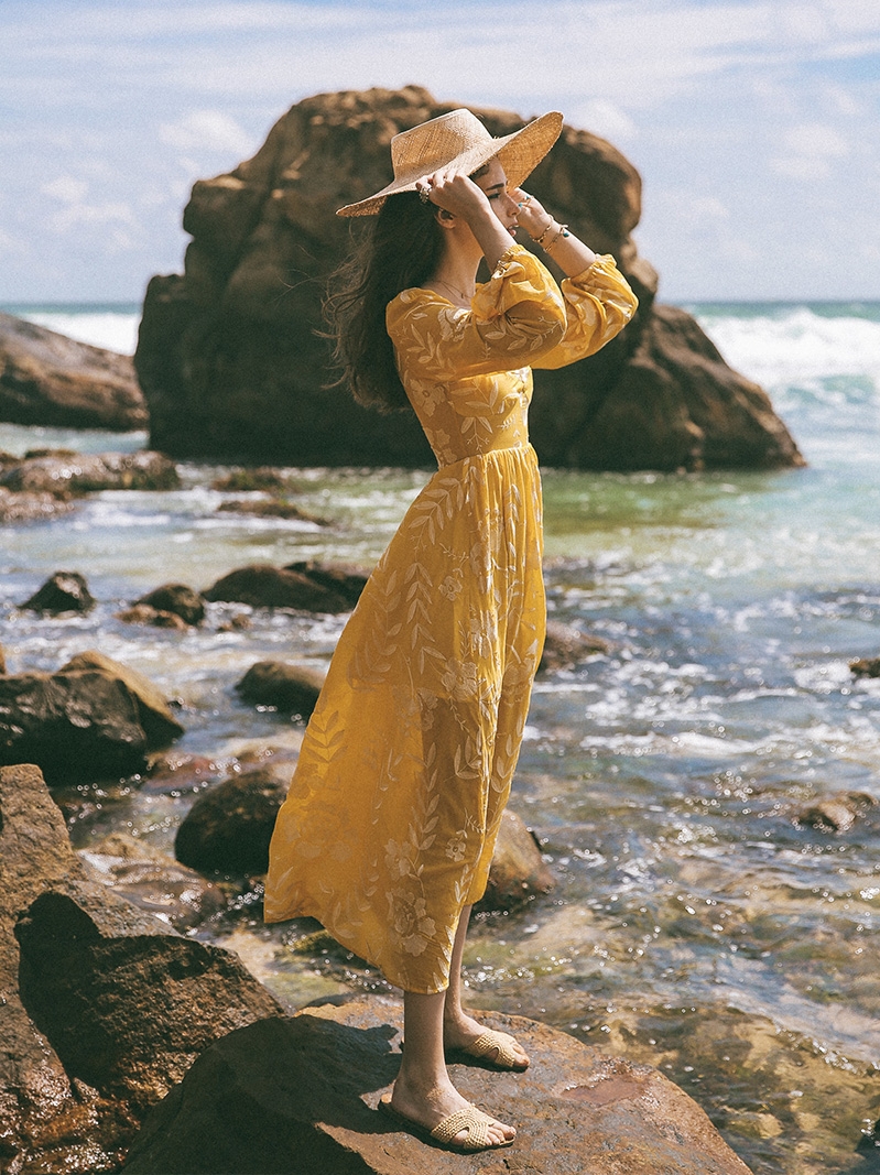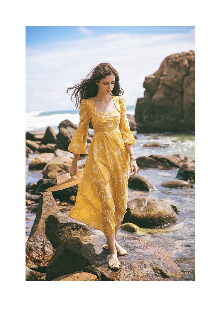 SINCE THEN SWEETHEART NECKLINE EMBROIDERED MAXI DRESS IN YELLOW