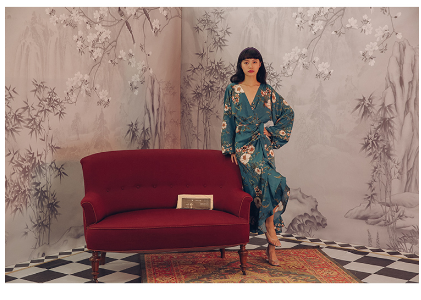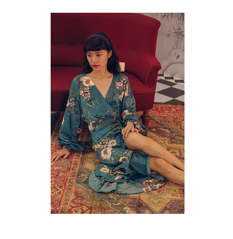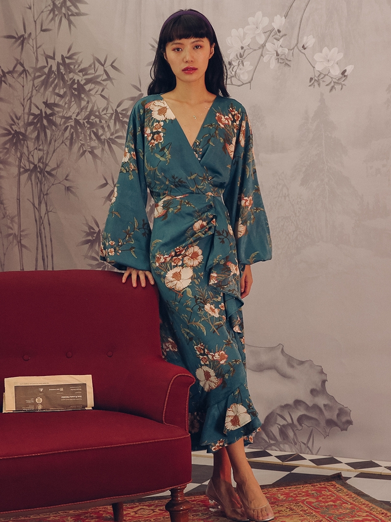 Floral print Tie back detail Frill trims Wrap front Long sleeve design