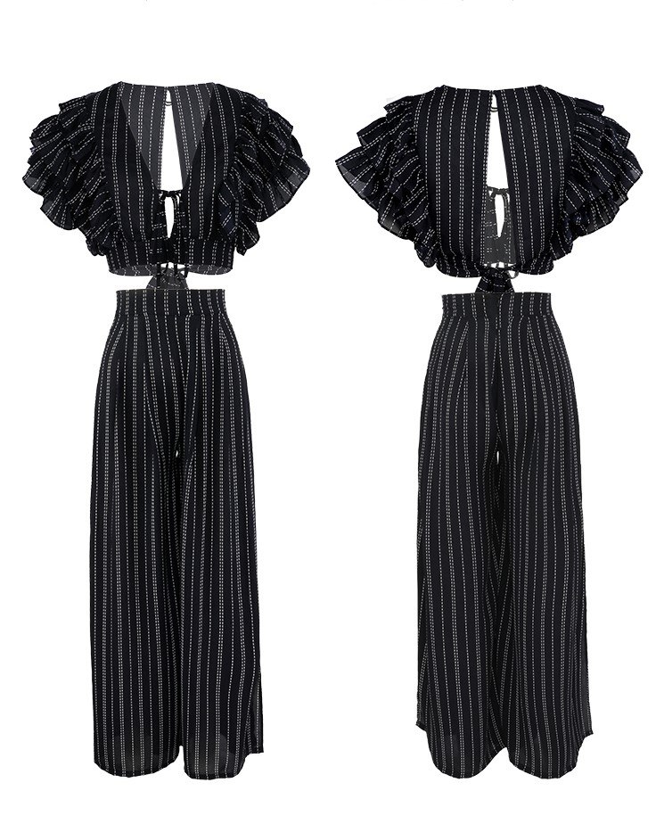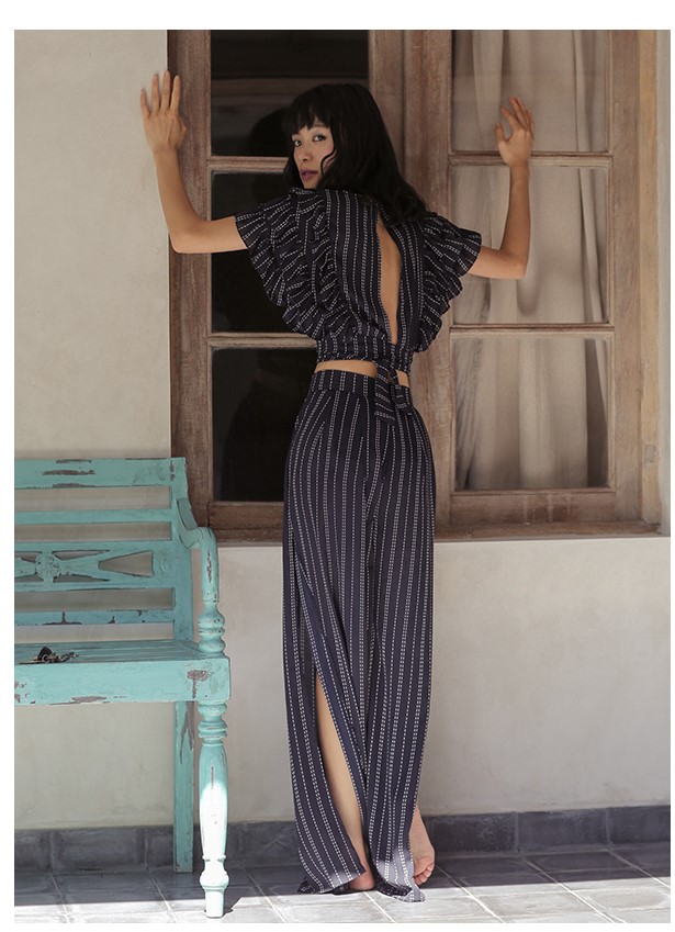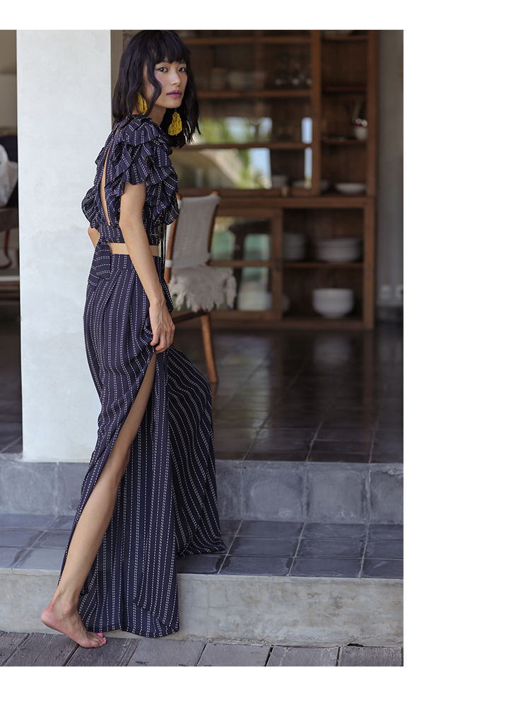 SINCE THEN TIE BACK PLUNGE TOP WITH SIDE SPLIT TROUSER CO ORD IN STRIPE