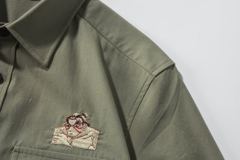 DEFECTIVO STUDIO CREATIVE SUMO PRINT MULTI POCKET SHORT SLEEVE SHIRT IN GREEN