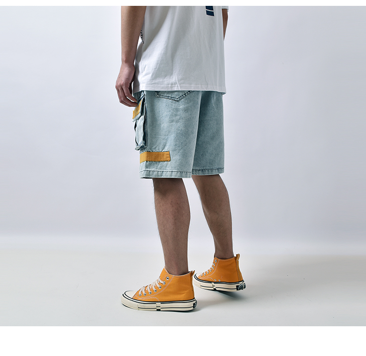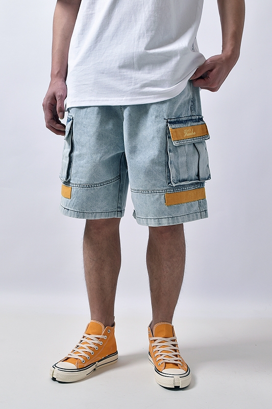 DEFECTIVO DENIM RETRO LIGHT BLUE PATCH JEAN SHORT PANTS
