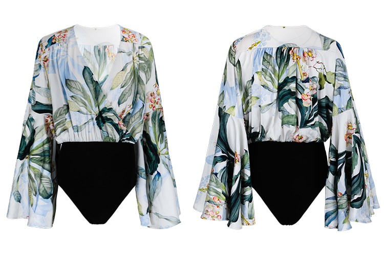 SINCE THEN FRILL SLEEVE WRAP FRONT BODY IN TROPICAL FLORAL