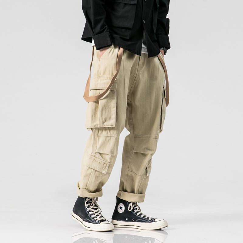 ZOZILLA DOMIXZA JAPANESE STYLE WEBBING WIDE LEG CASUAL TROUSERS