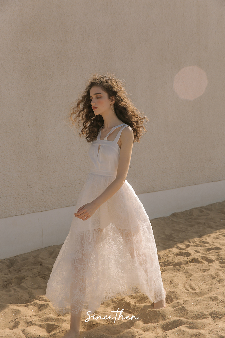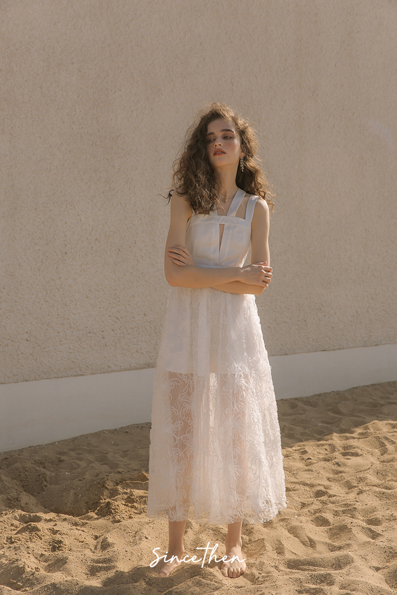 SINCE THEN TALL ALL OVER LACE EMBROIDERED MIDAXI DRESS IN WHITE