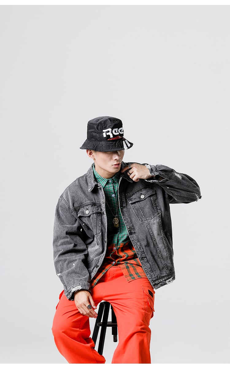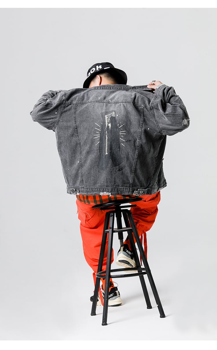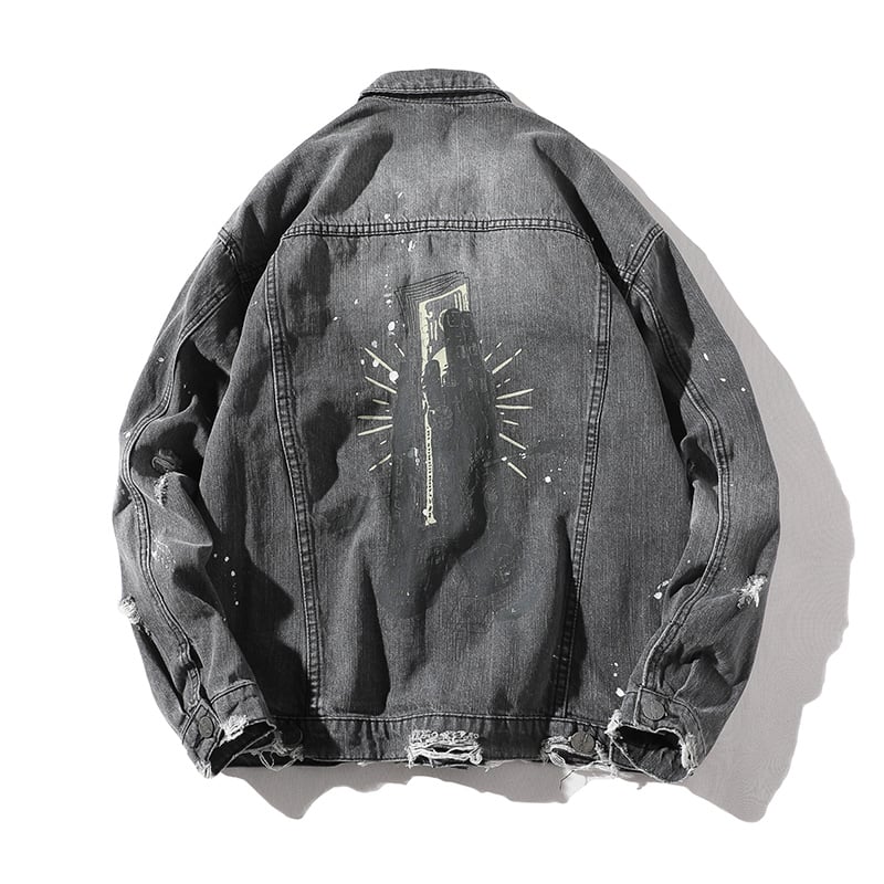 ADAM FREAKO ACE REAPER WASHED SPLASH INK DENIM JEAN JACKET IN GRAY