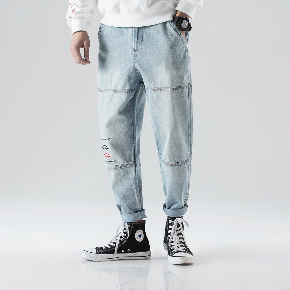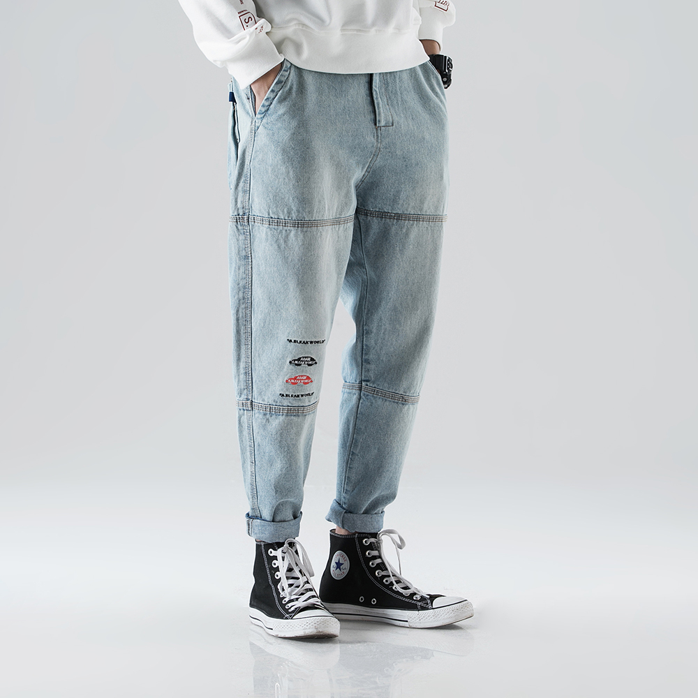 NINDOLA ADAM FREAK DENIM JEAN TRACK PANTS IN LIGHT BLUE