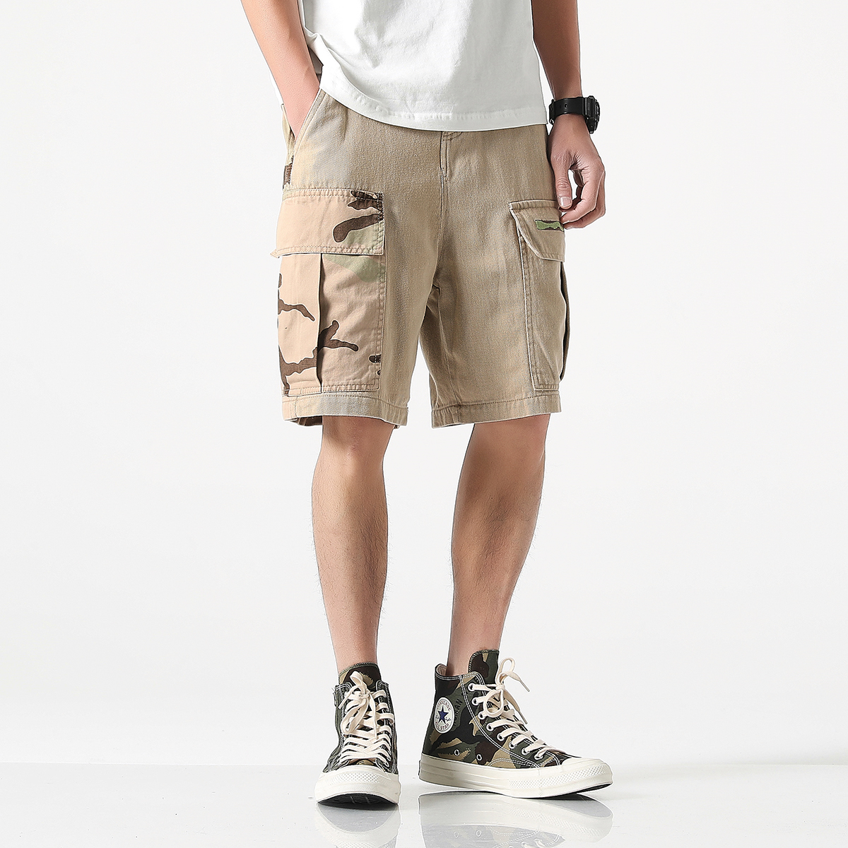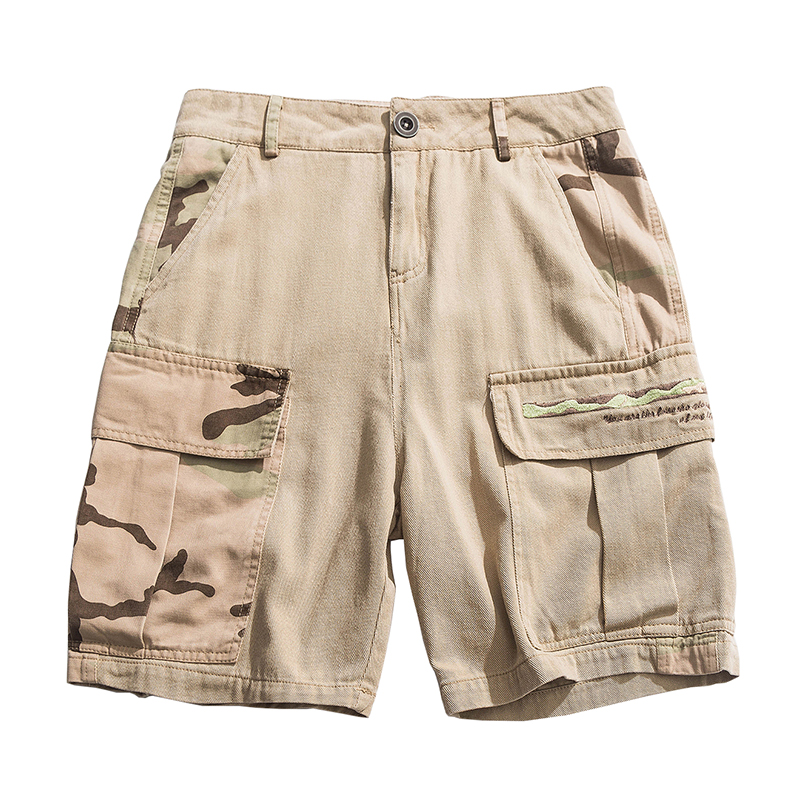 SWOLIZA PATCH CAMO PRINT SHORT PANTS IN KHAKI