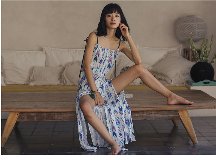 Tie straps Open back Button through design Paisley print Side split 100% cotton